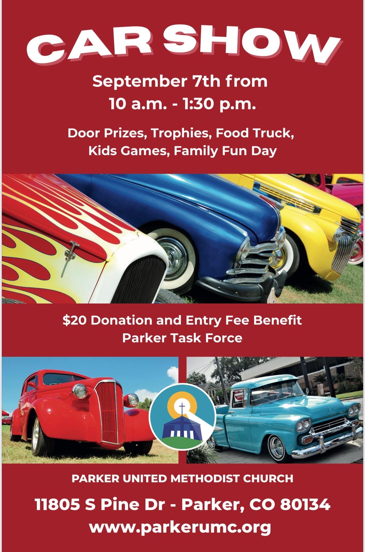 A fun way to support the Parker Task Force is to attend the car show at Parker United Methodist Church this Sunday, September 7 from 10:00 a.m. - 1:30 p.m. A $20 donation is requested; all proceeds go to the Task Force.  Questions?  Contact Jack Kear